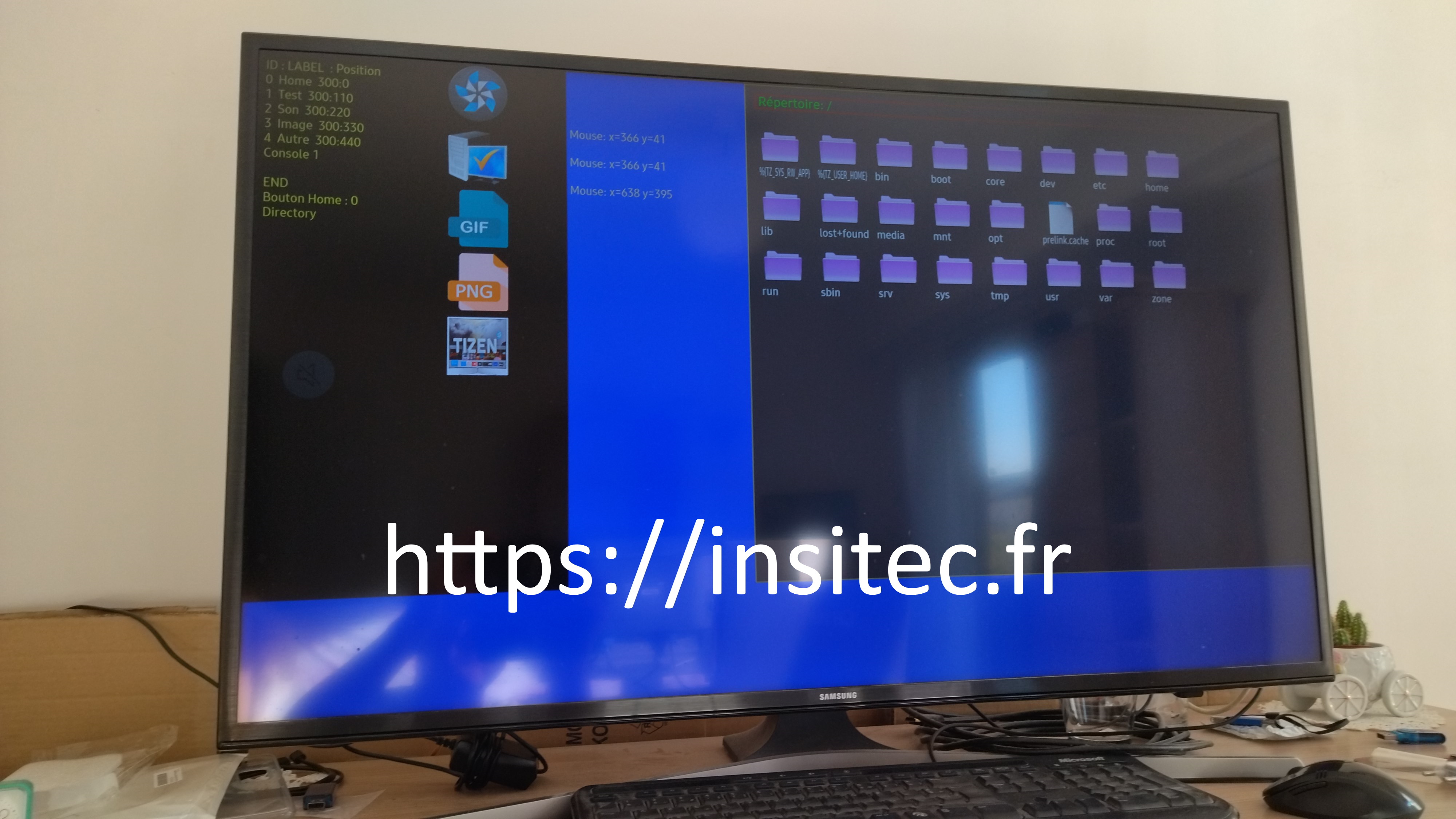 Notre programme de Gestion de fichiers va s'installer tranquillement sur la TV dans le système Tizen OS 3.0 et l'exécution serra lancer automatiquement. Si le résultat visible sur l'écran de la Smart TV ne correspond pas ou ne marche pas bien, il faut revoir la partie HTML ou Javascript du projet. Notre programme est en JavaScript et utilise la balise 'canvas' pour écrire et dessiner sur l'écran (1920x1080) de la Smart TV (Tizen OS). Cette Application restera installée dans la Smart TV et pourra fonctionner dès que la Smart TV sera connectée sur un routeur (Wifi ou Ethernet) ayant un serveur DHCP. (Eventuellemet adresse IP manuelle)